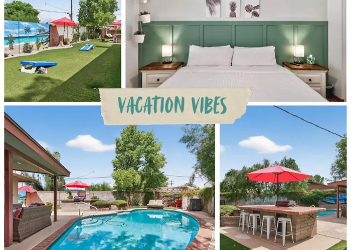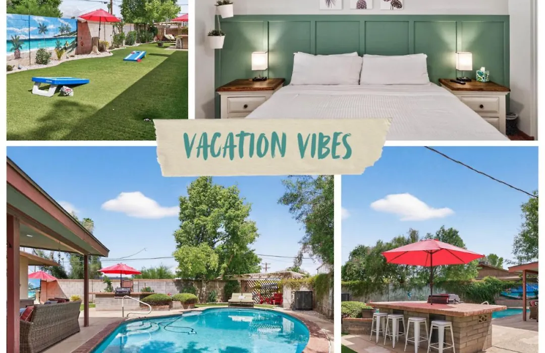 De gesitueerde in Tempe Pineapple Oasis - Heated Pool, Asu, Sleeps 12 Villa Tempe biedt uitzicht op het zwembad en ligt op een korte afstand van Phoenix Sky haven.
